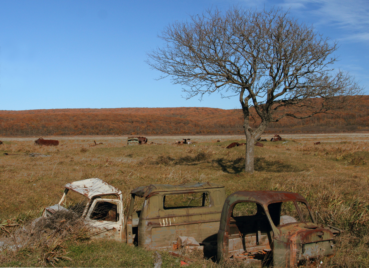 Ust-Sobelevka, a village of about two hundred people, is located at the mouth of the Sobolevka River in northern Primorye, Russia. It is almost impossible to reach; the road to it is more a labyrinth of mud and water than a thoroughfare, and few people make the journey. It is a sullen, wind-swept place populated by hunters and those with nowhere else to go, and where the tallest structure in town is the concrete skeleton of an orphanage never completed. This field, which occupies the few hundred meters of space between the village and the Sea of Japan, is inexplicably littered with rusting trucks; gravestones mourning the passing of better days.